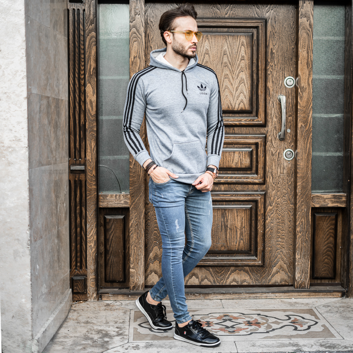 هودی مردانه آدیداس آستین خط دارمدل Tekin