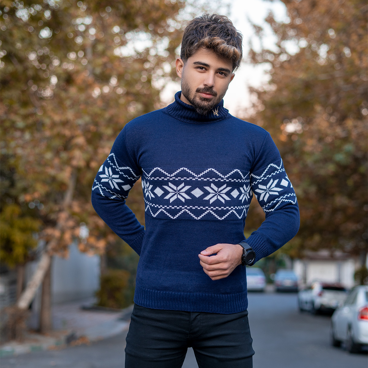 یقه اسکی مردانه سرمه ای مدل Arja