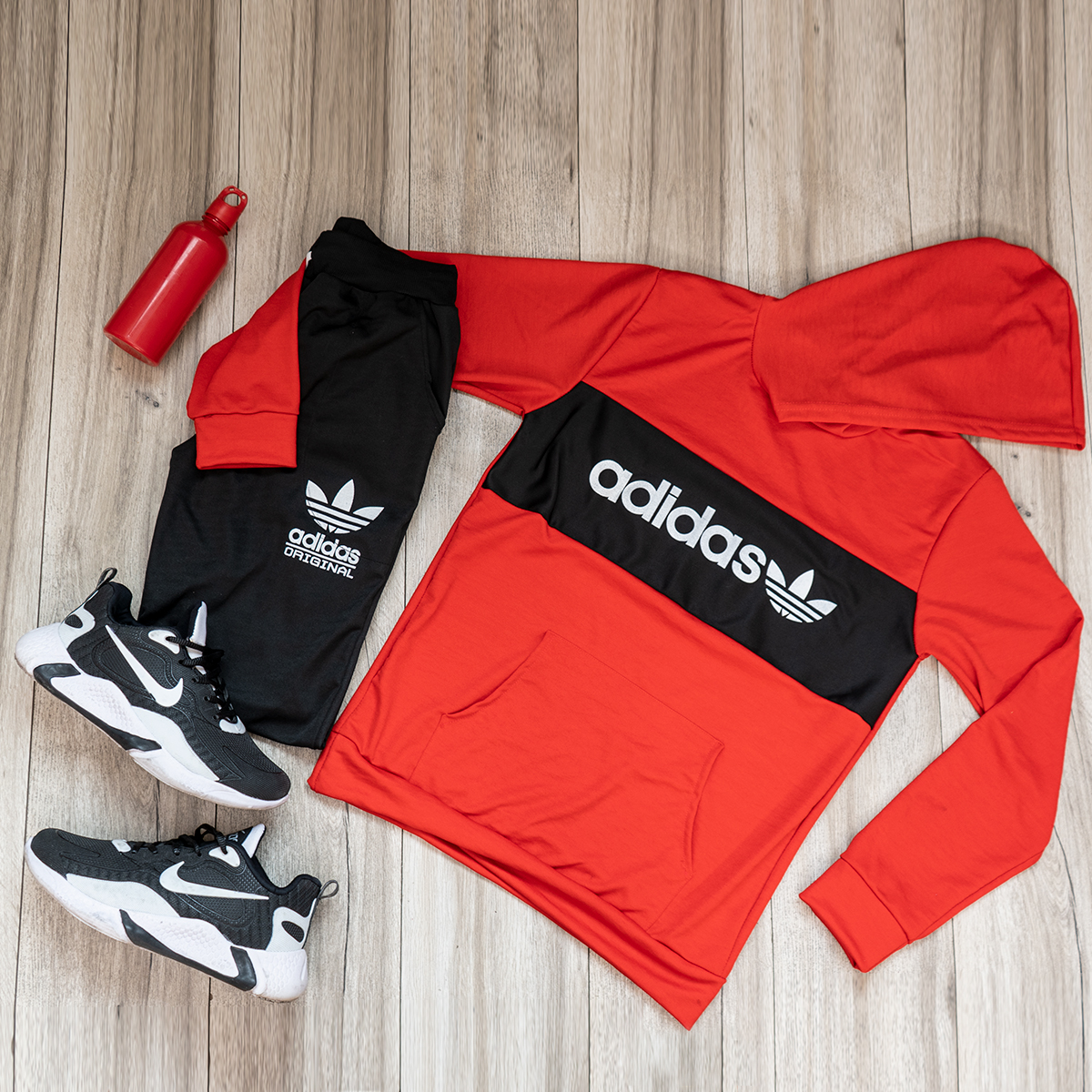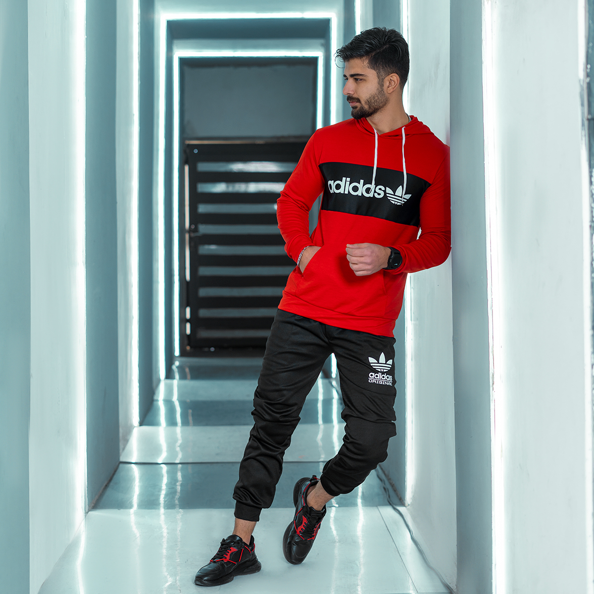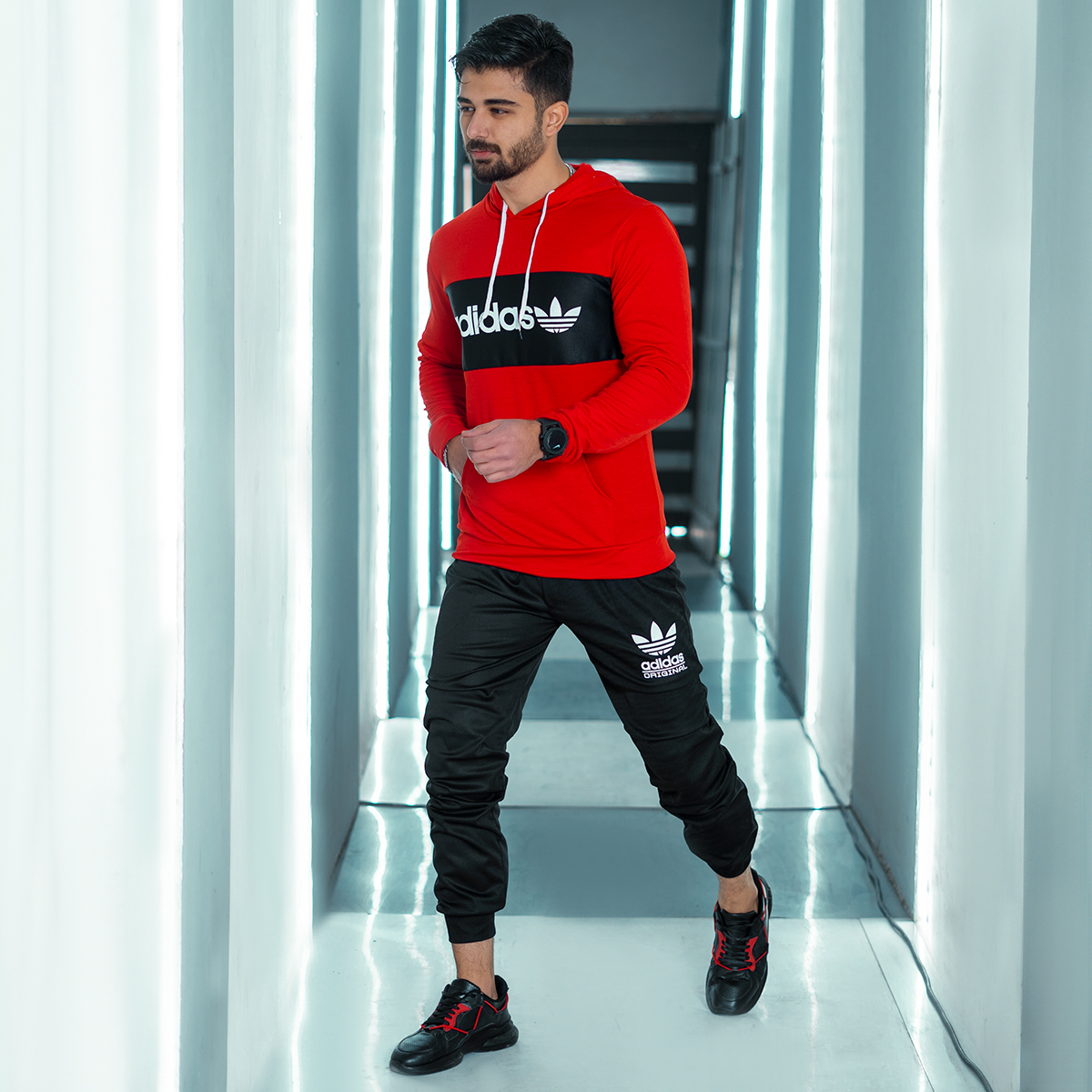 ست هودی شلوار آدیداس قرمز مدل Sadri
