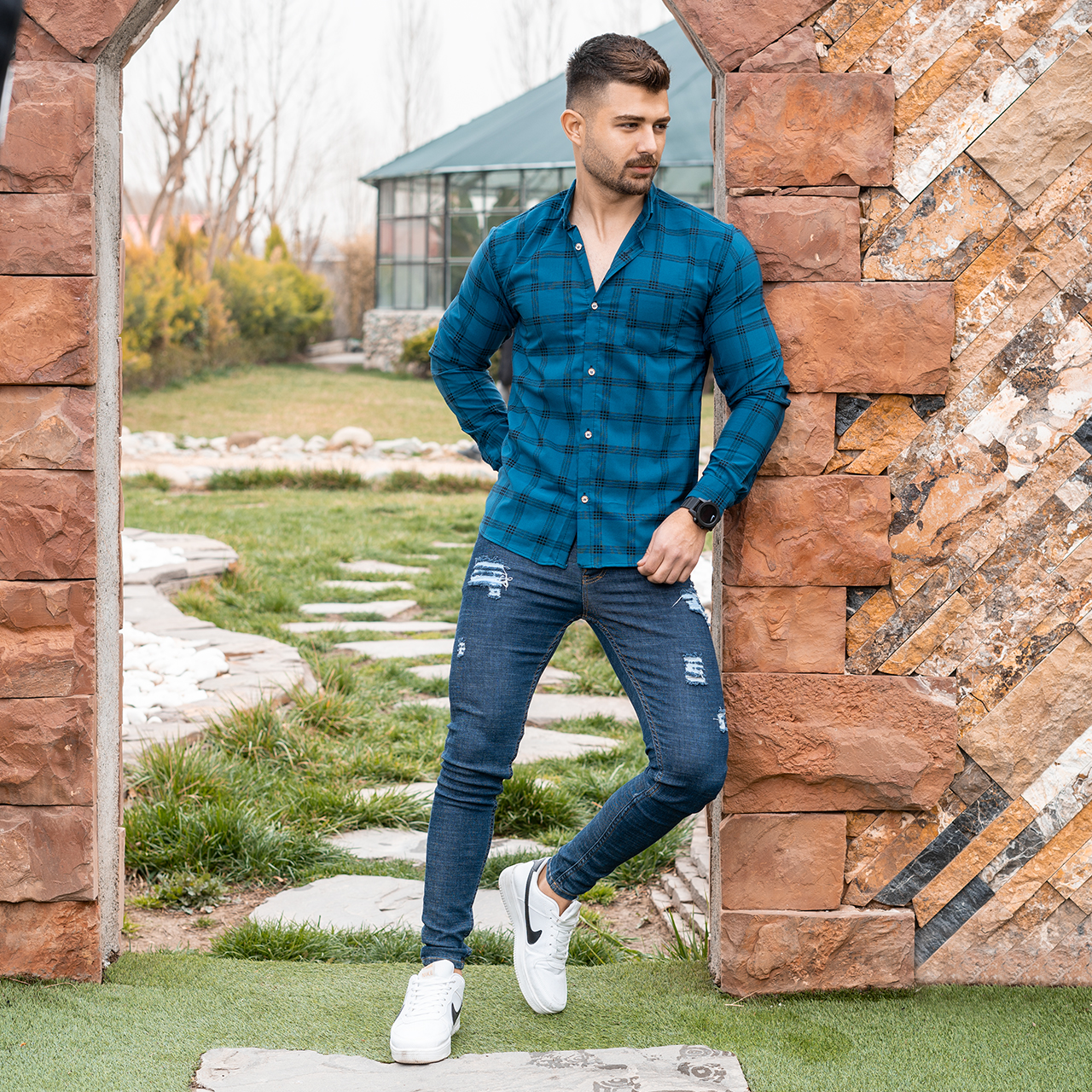 پیراهن مردانه چهارخونه آبی مدل Ravin