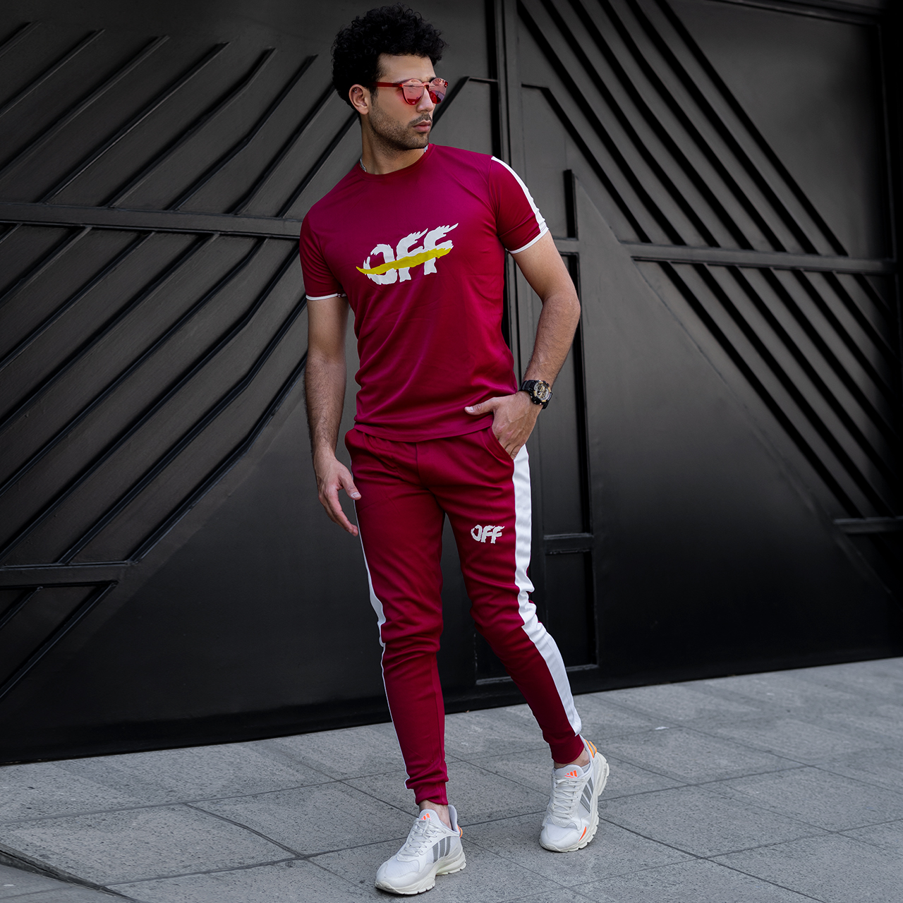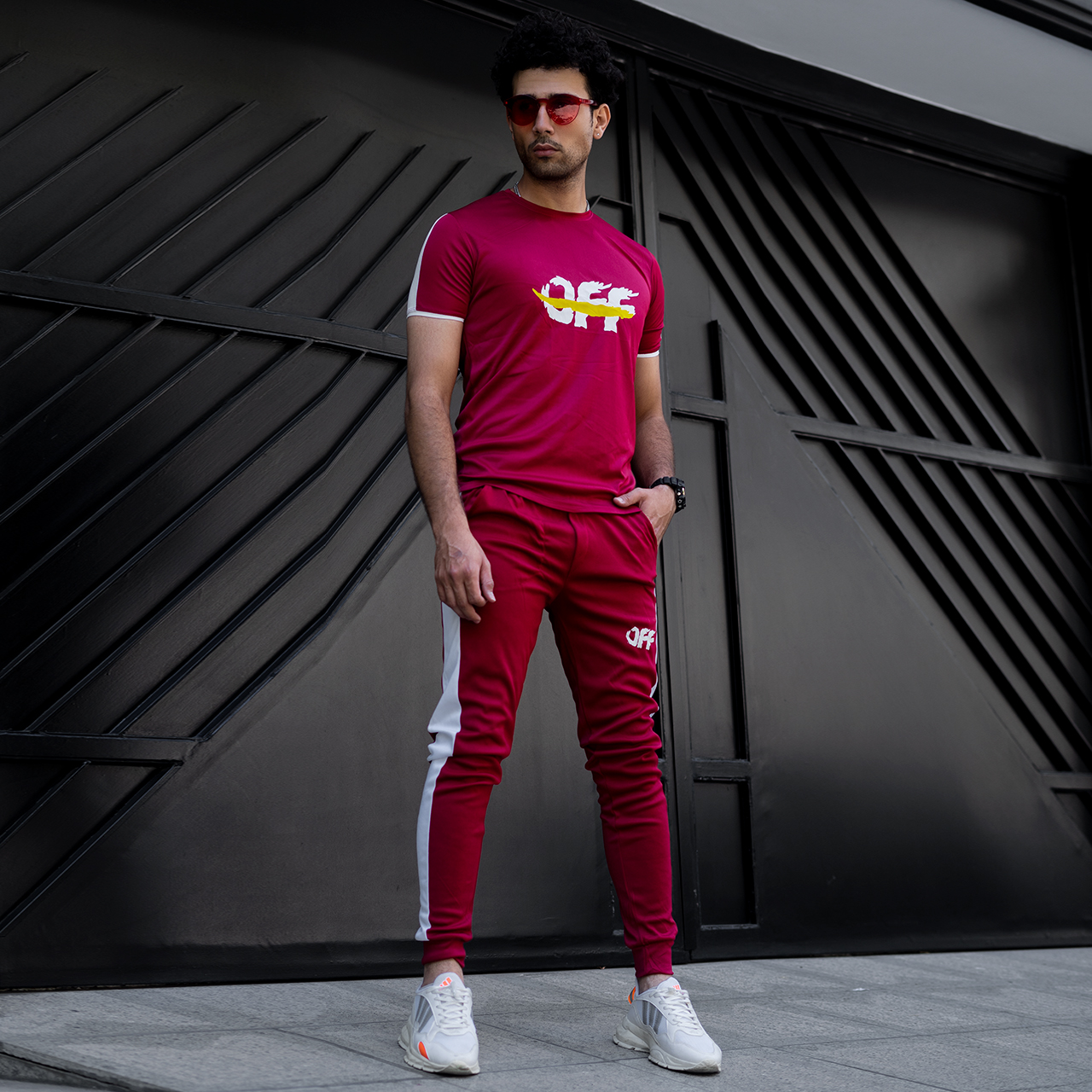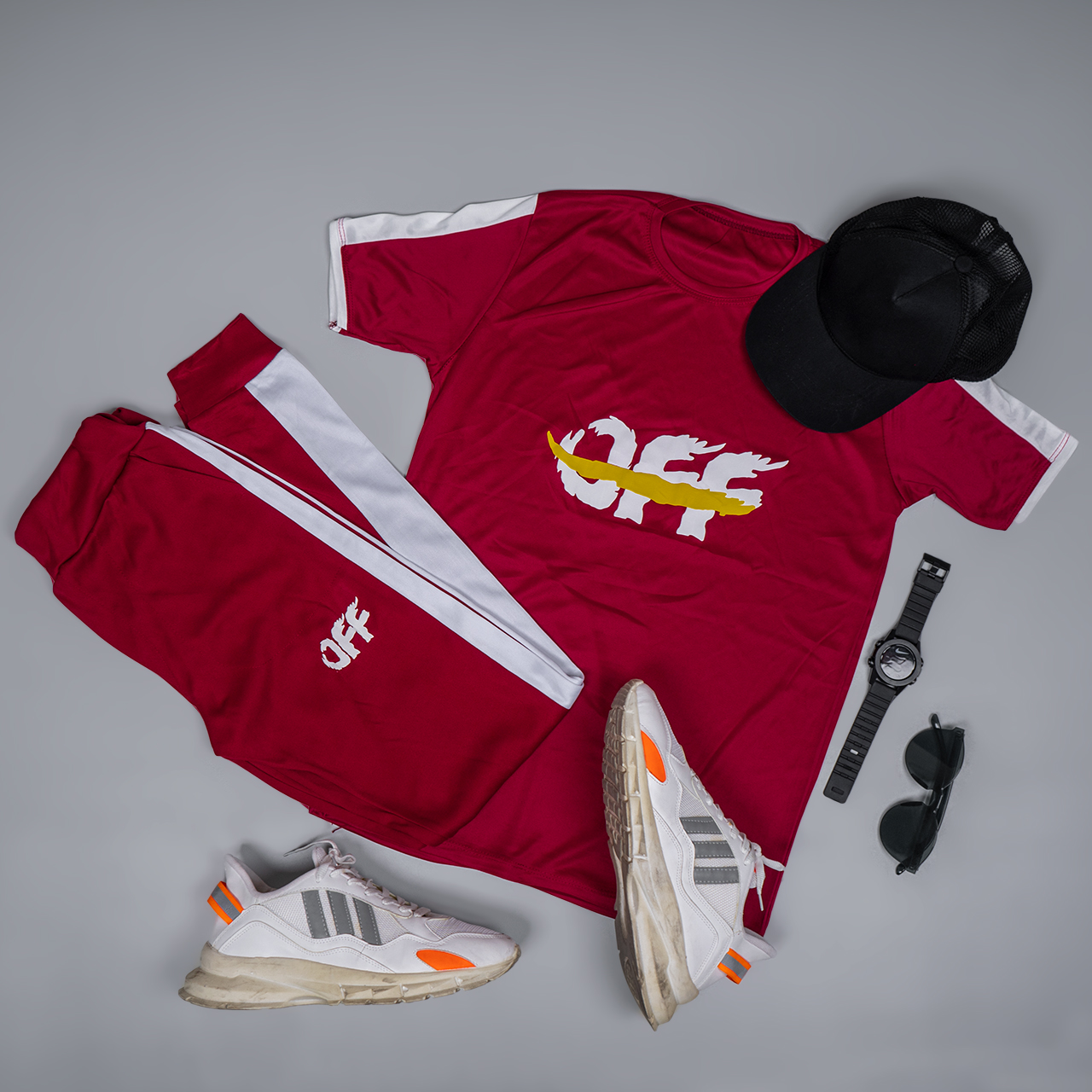 ست تیشرت شلوار off قرمز مردانه مدل O77