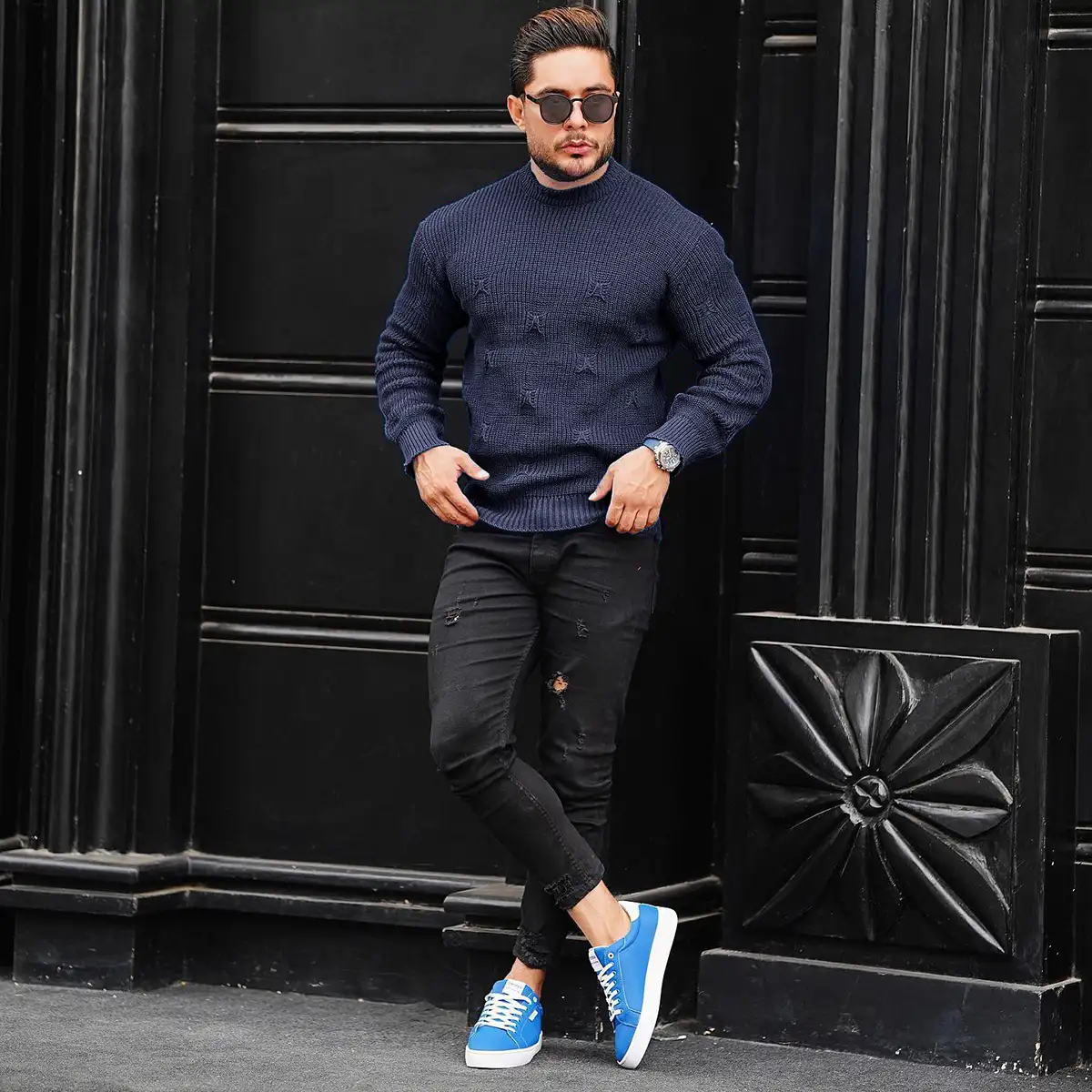 پلیور زاپ دار سرمه ای مردانه مدلDeta
