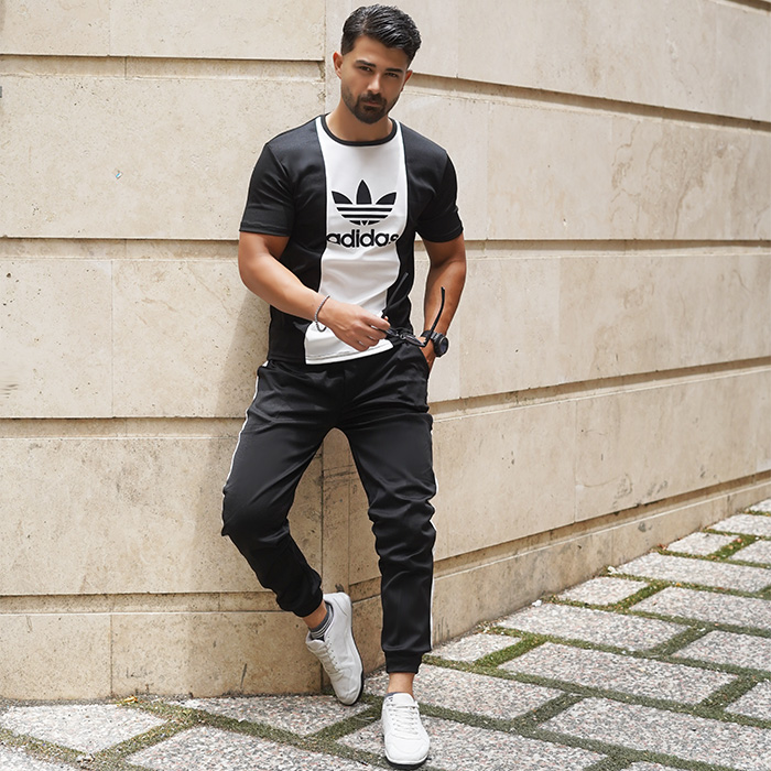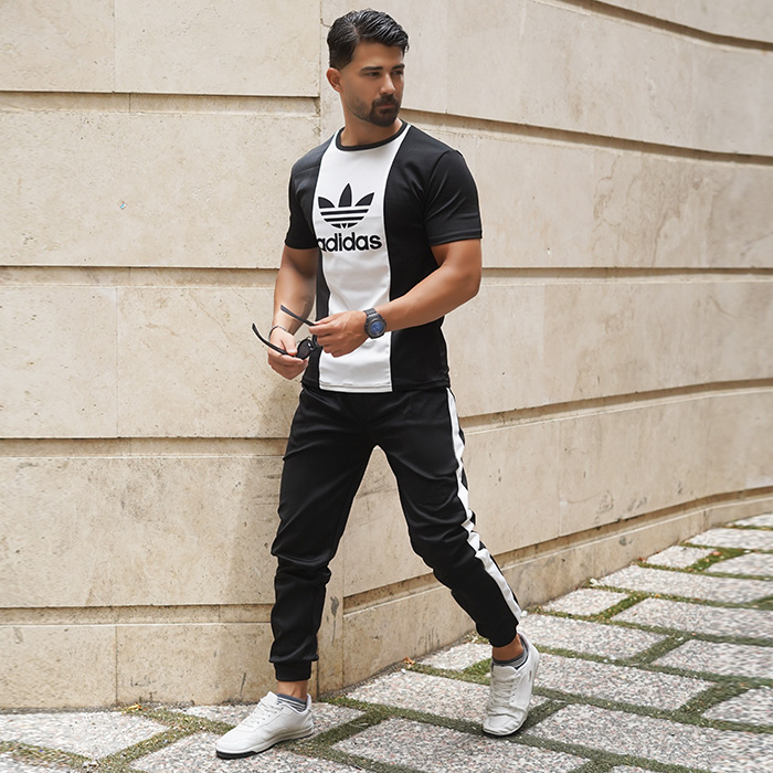 ست تیشرت شلوار مردانه مشکی سفید مدل ilia