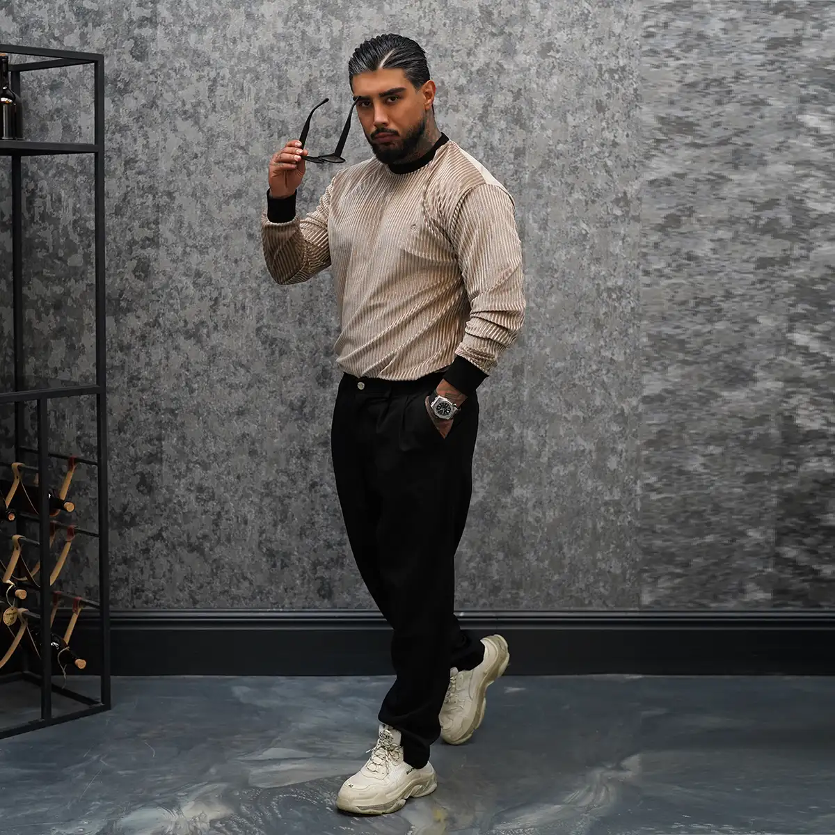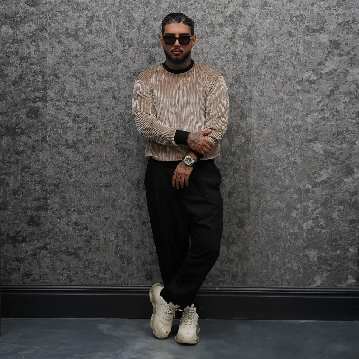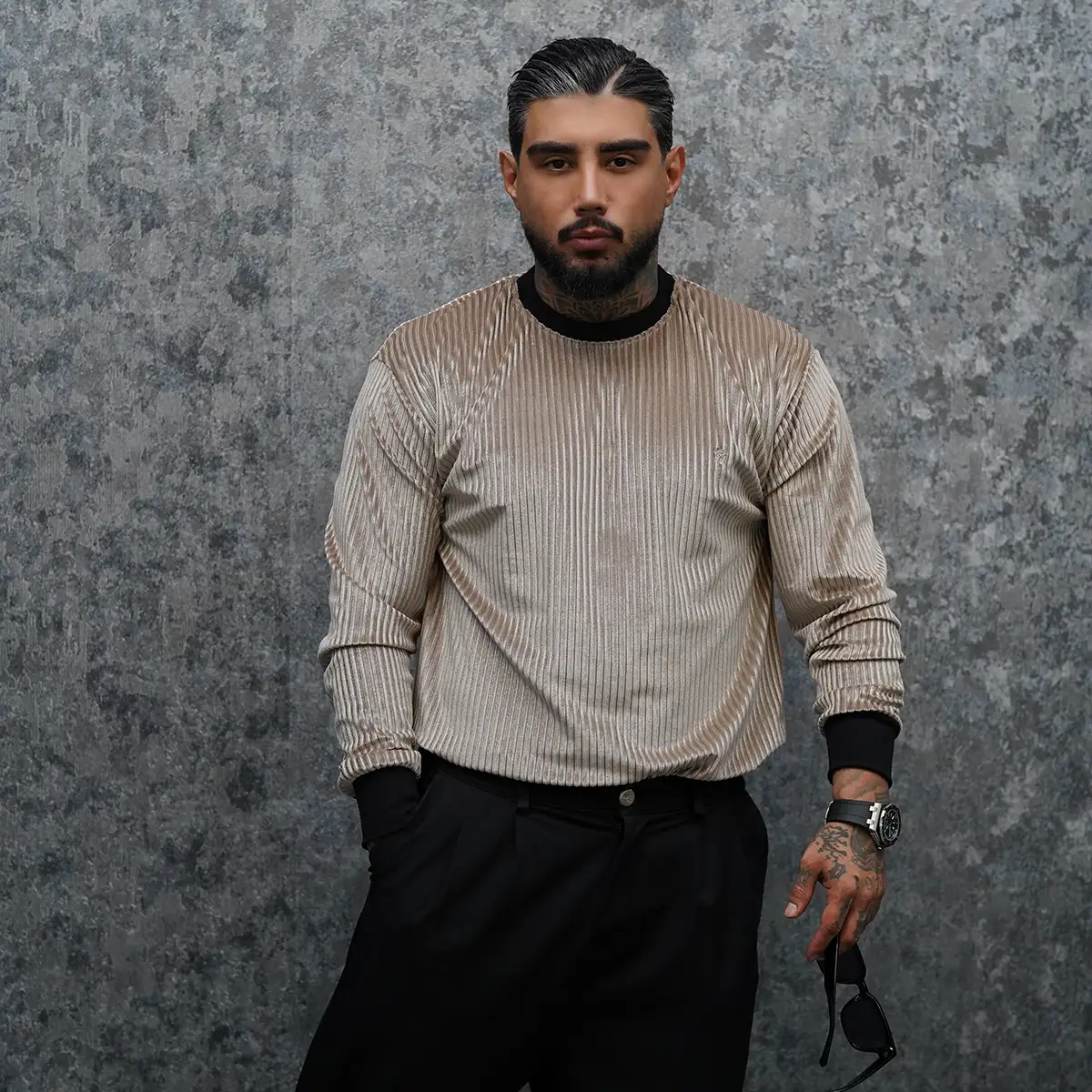 تیشرت آستین بلند کرم مردانه مدل Behrouz