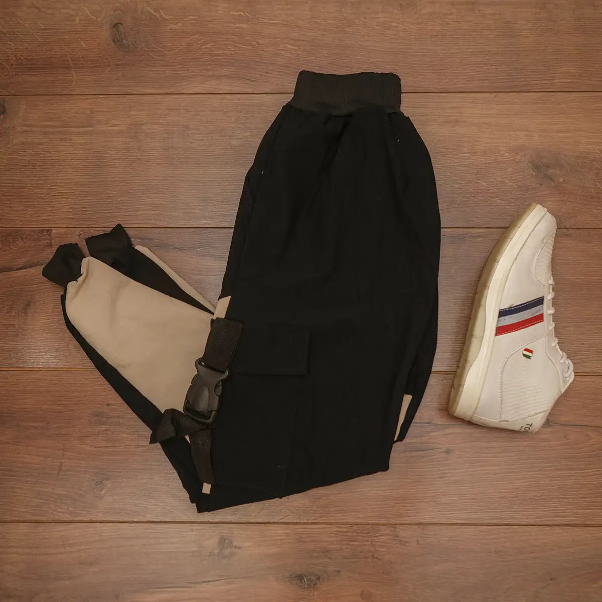 شلوار اسلش مشکی کرم HAMEN