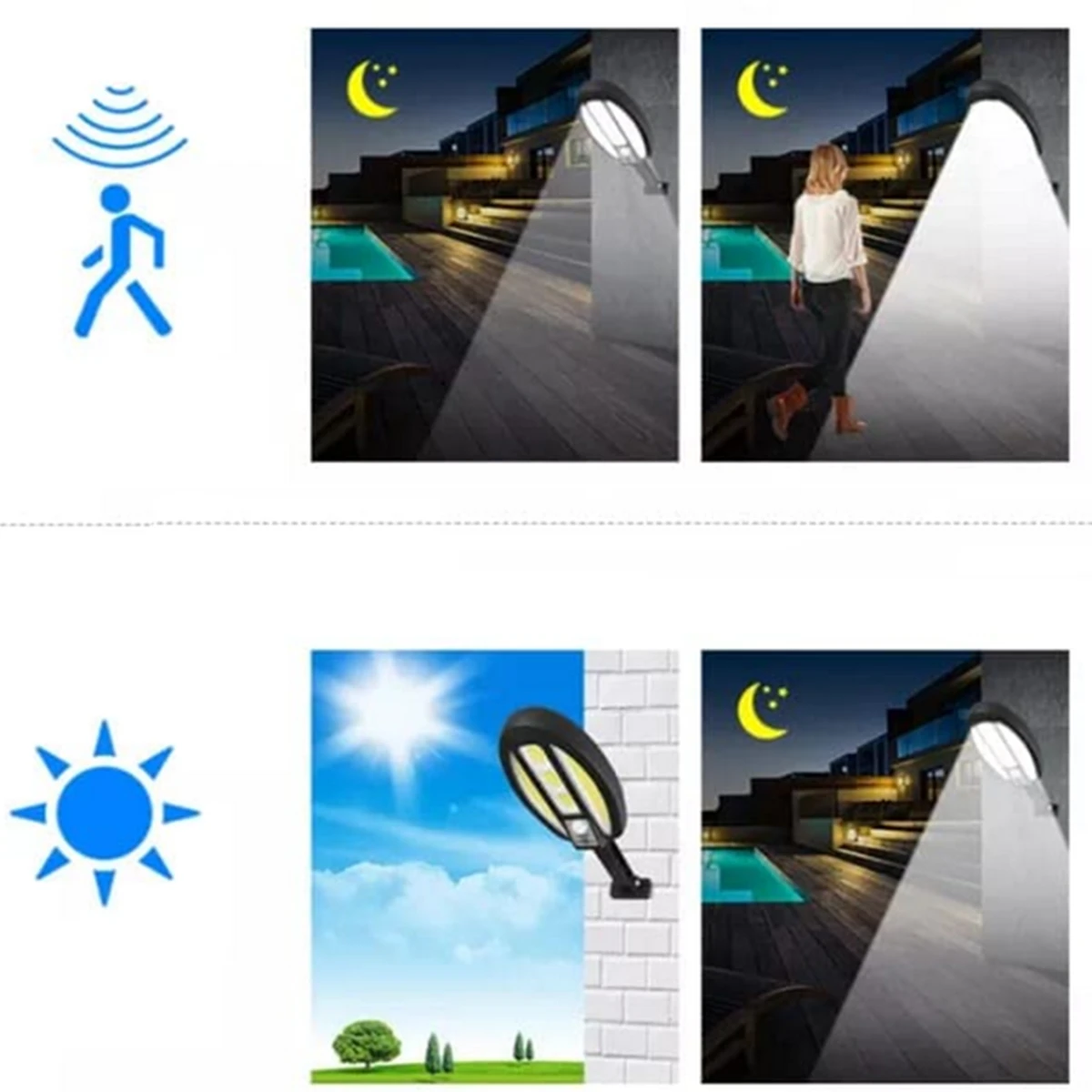 عملکرد این چراغ دیواری خورشیدی خودکار بوده و در روز شارژ و در شب خودکار روشن می شود.