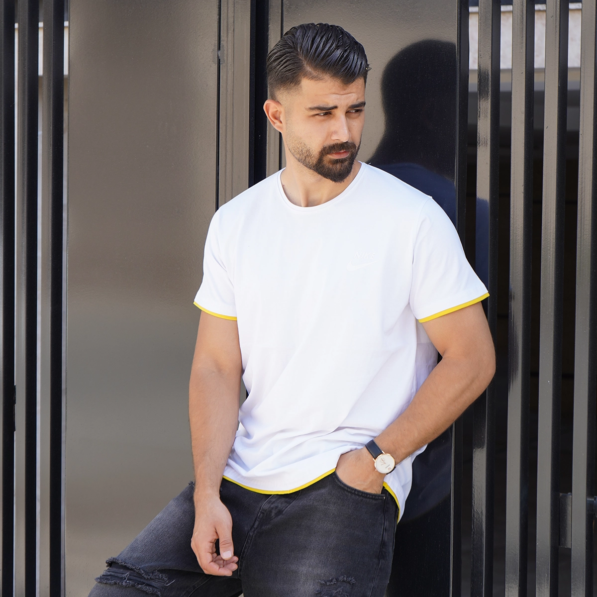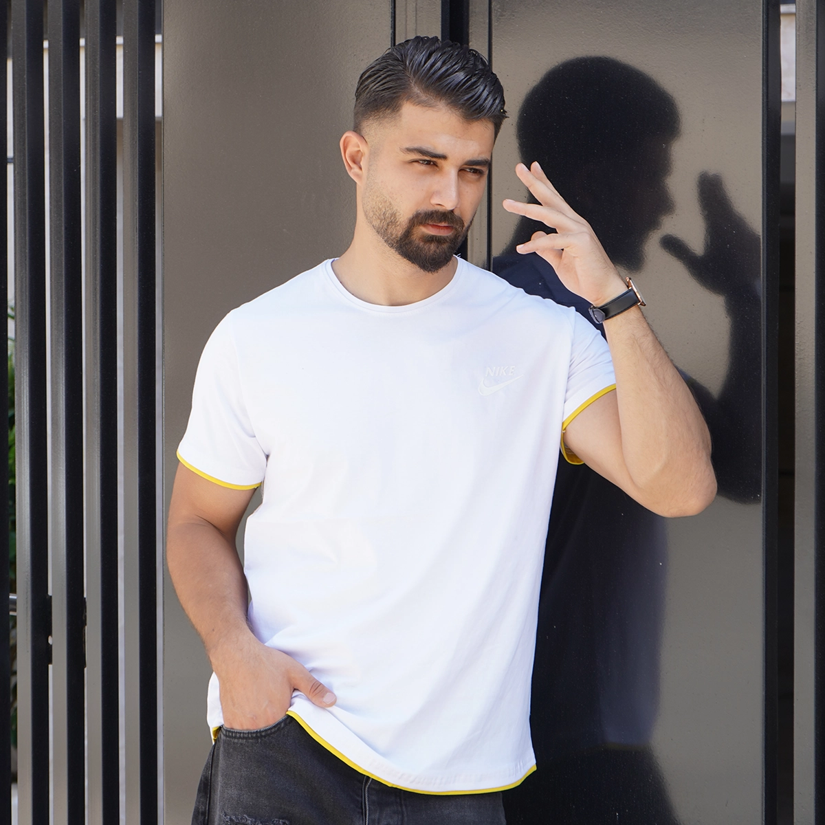 تیشرت یقه گرد سفید مردانه مدل kamyar