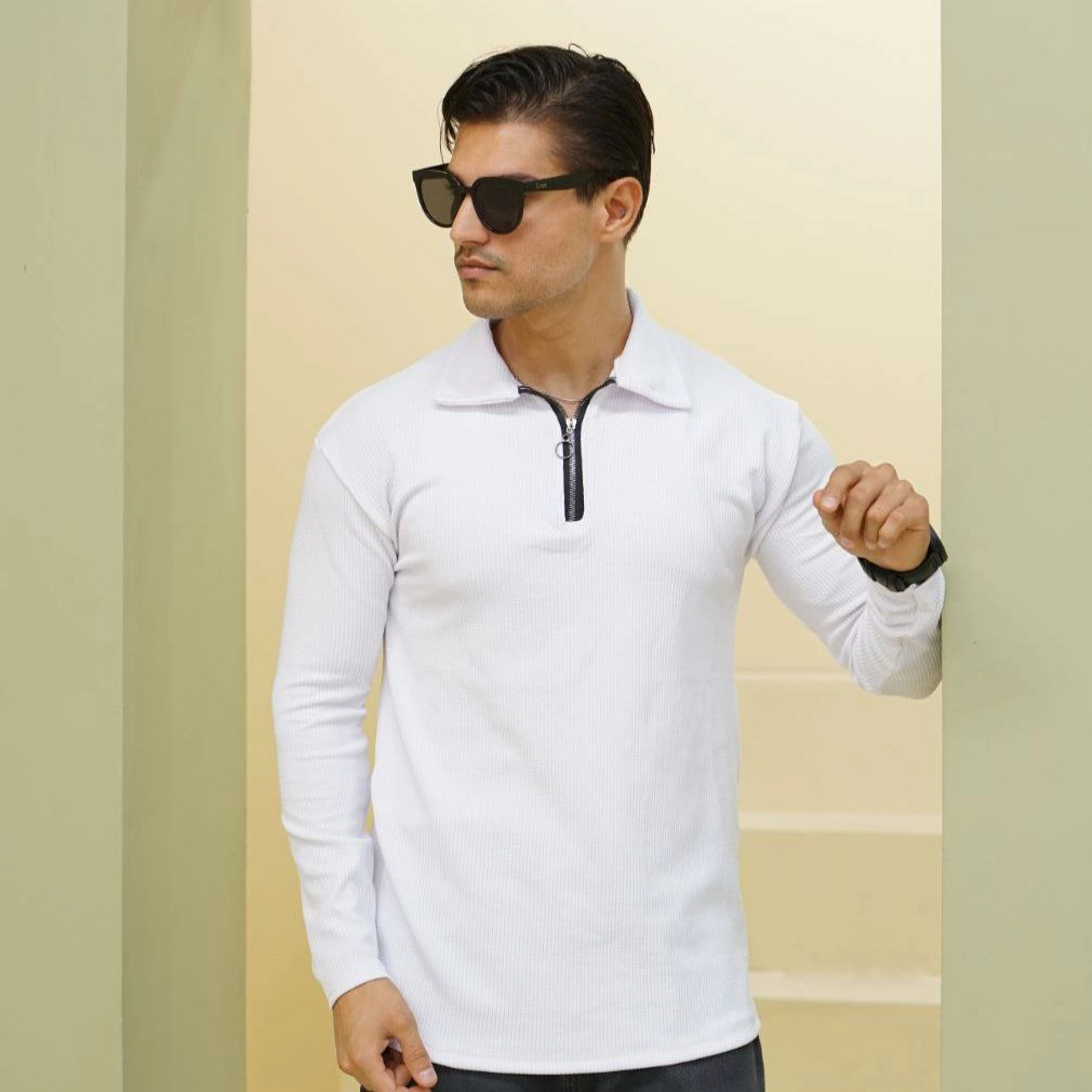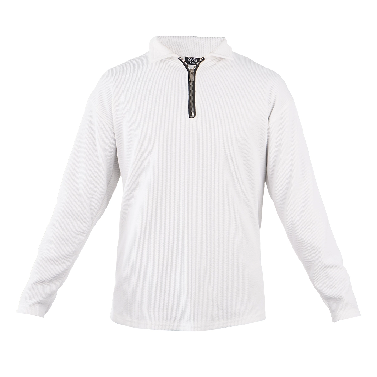 بلوز مردانه نیم زیپ آستین بلند سفید مدل FARBOD
